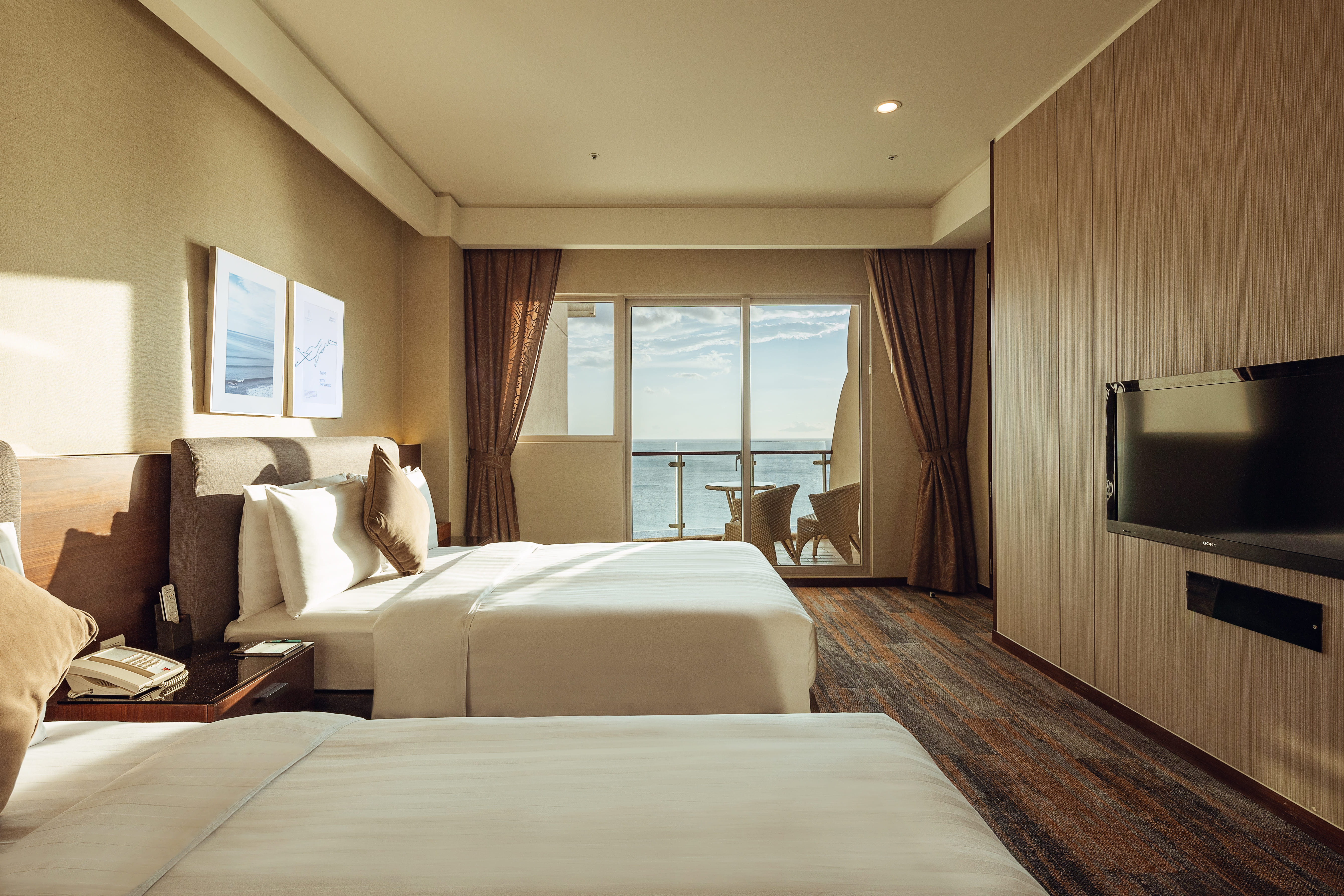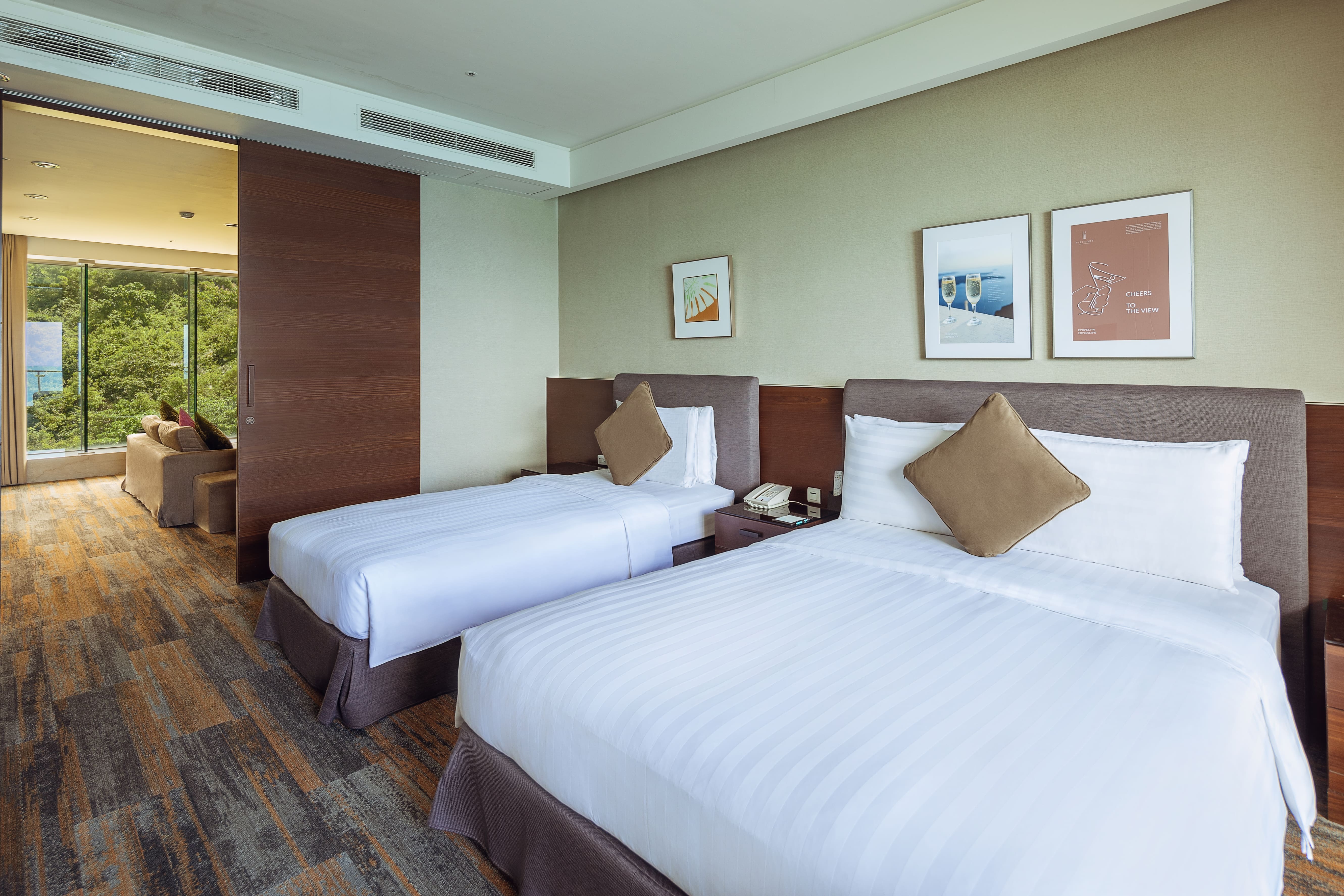 為六人出遊量身打造的豪華套房,獨立低調質感的客廳空間,客房面向H會館獨家絕美海景,景緻廣闊宜人且設施齊全,獨立的兩張雙人床、兩張單人床,讓每個人都有寬裕舒適的空間,讓旅程擁抱幸福而不擁擠,宛如回家般,舒適共享幸福時光。