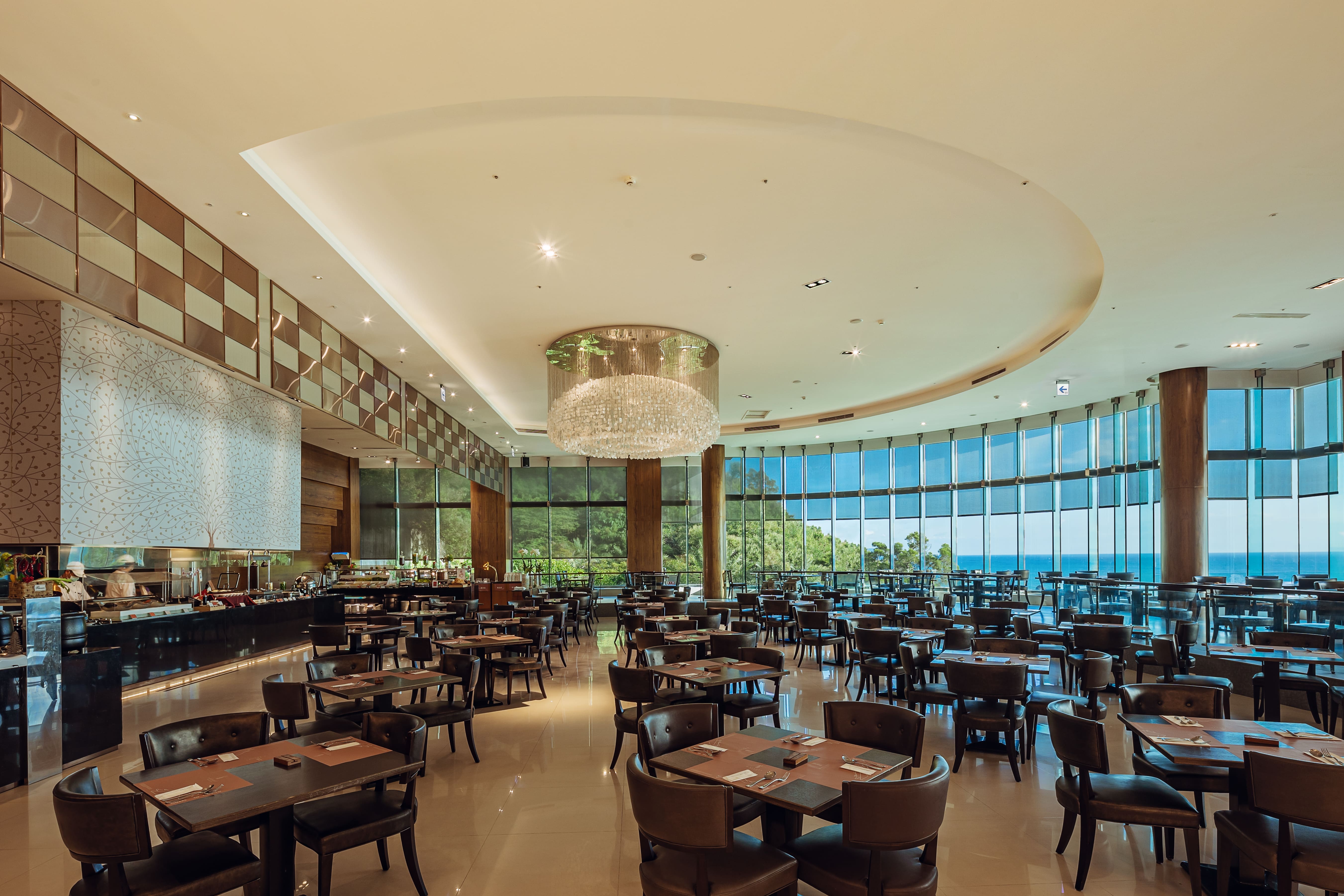 會館內設有多間精緻美饌的中、西式餐廳及多功能宴會廳,超凡廚藝搭配明亮時尚空間,偶有蔚藍風景、南霞夕照,佐以中西揉合的創意佳饌,提供旅人度假時釋放味蕾的另類空間。