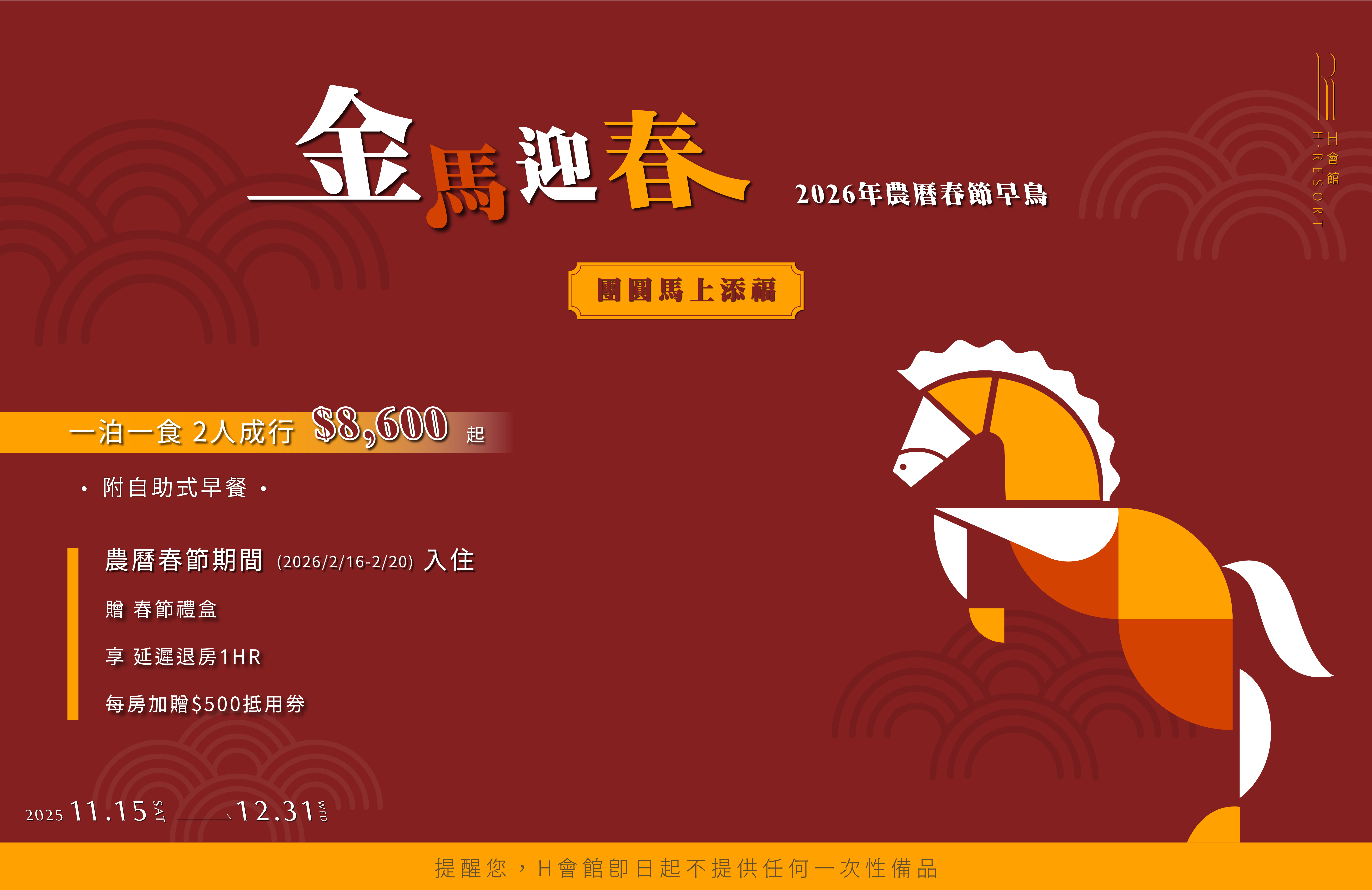 【2026/2/16 (除夕) ~ 2026/2/20 (初四)】一泊一食🧧2026🐎金馬迎春 ◆ 春節早鳥搶先GO
