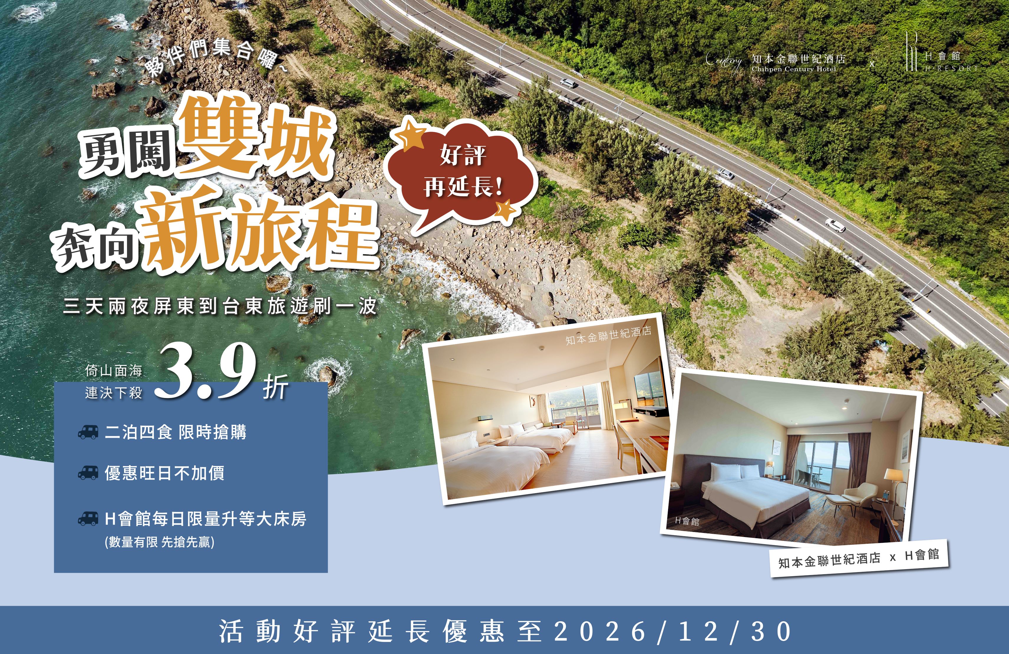 活動好評再延長【知本金聯世紀酒店 X H會館】二泊四食,限時搶購下殺3.9折