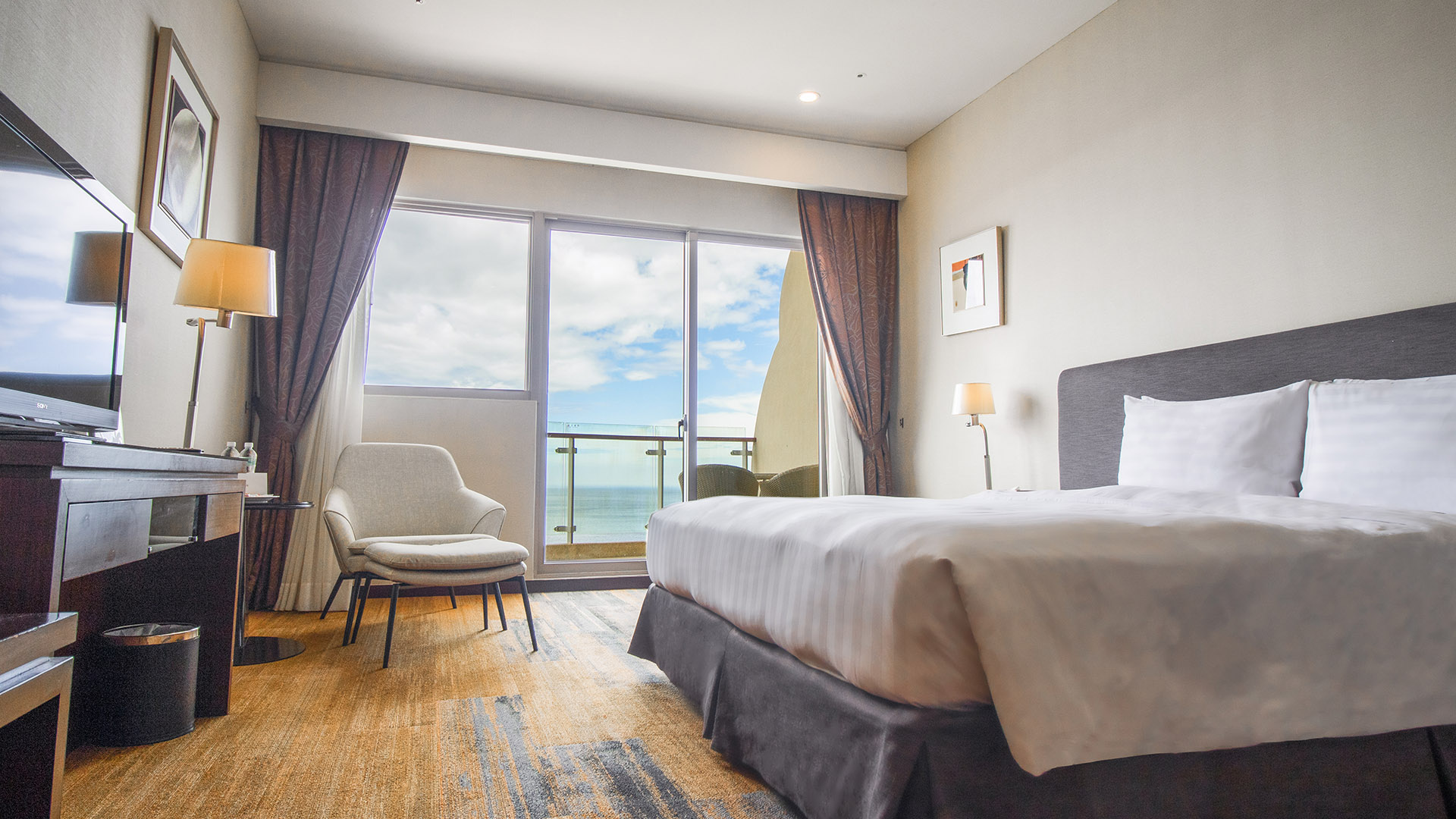 ホワイトとブラウンを基調とした客室で、足元まで広がる壁一面の大きな窓からは、まるで1枚の絵のような、大自然の生き生きとした美しい景観を満喫することができます。12坪のスペースには柔らかく快適な寝具一式と乾湿分離型の独立したバスルーム、おしゃれで行き届いたMini barや無料ADSLインターネット接続など、様々な設備を完備。部屋に一歩足を踏み入れたその瞬間から、旅の疲れを忘れてゆっくりとおくつろぎいただけます。