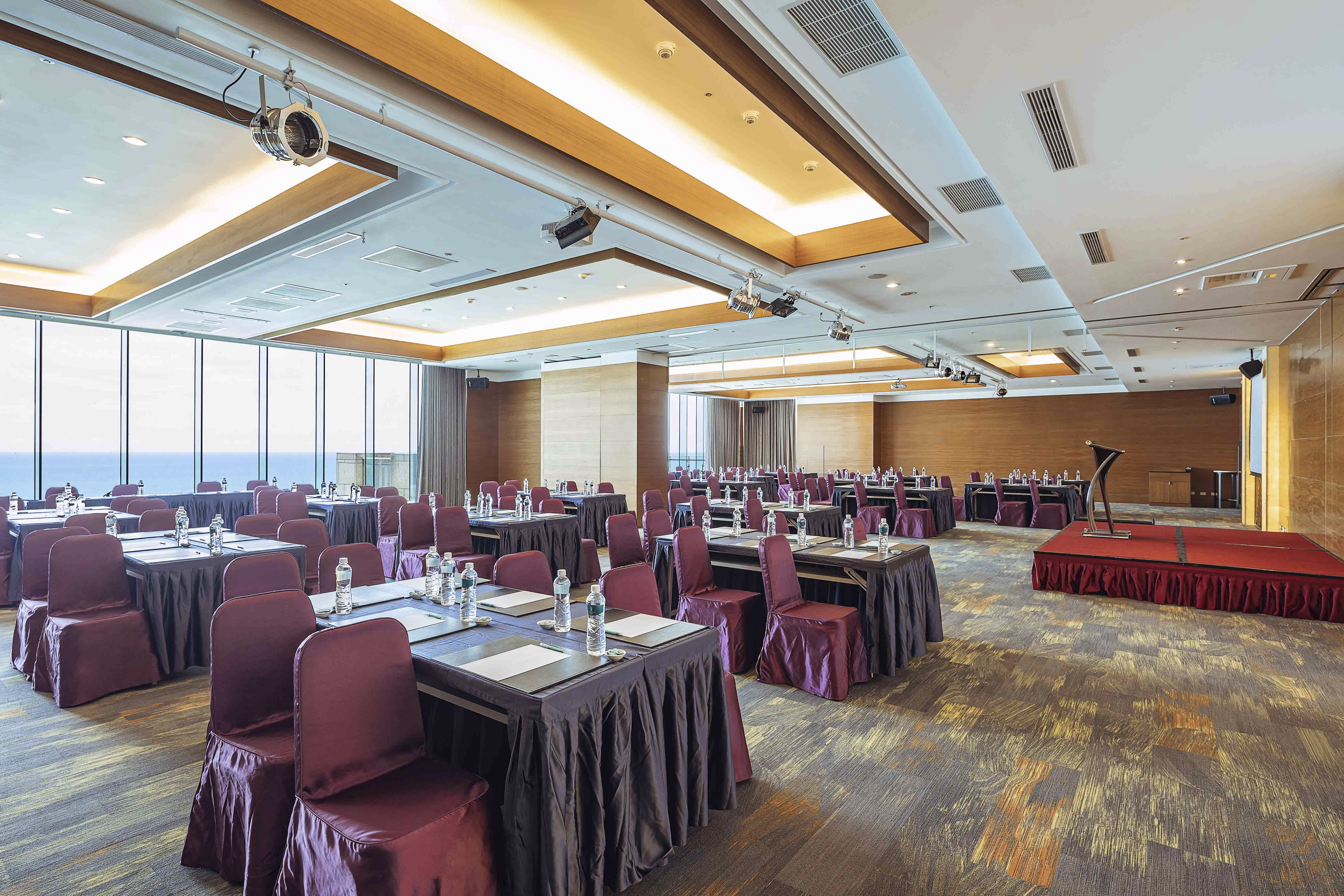 高貴而典雅、寬敞空間,可容納多位賓客,齊岳廳、齊峰廳兩廳可依照各類型會議需求開設適合的會議空間。匯集倚山面海景觀和豪華設計於一堂的磅礡氣勢,是婚宴、各式主題派對及各種會議類型的首選。