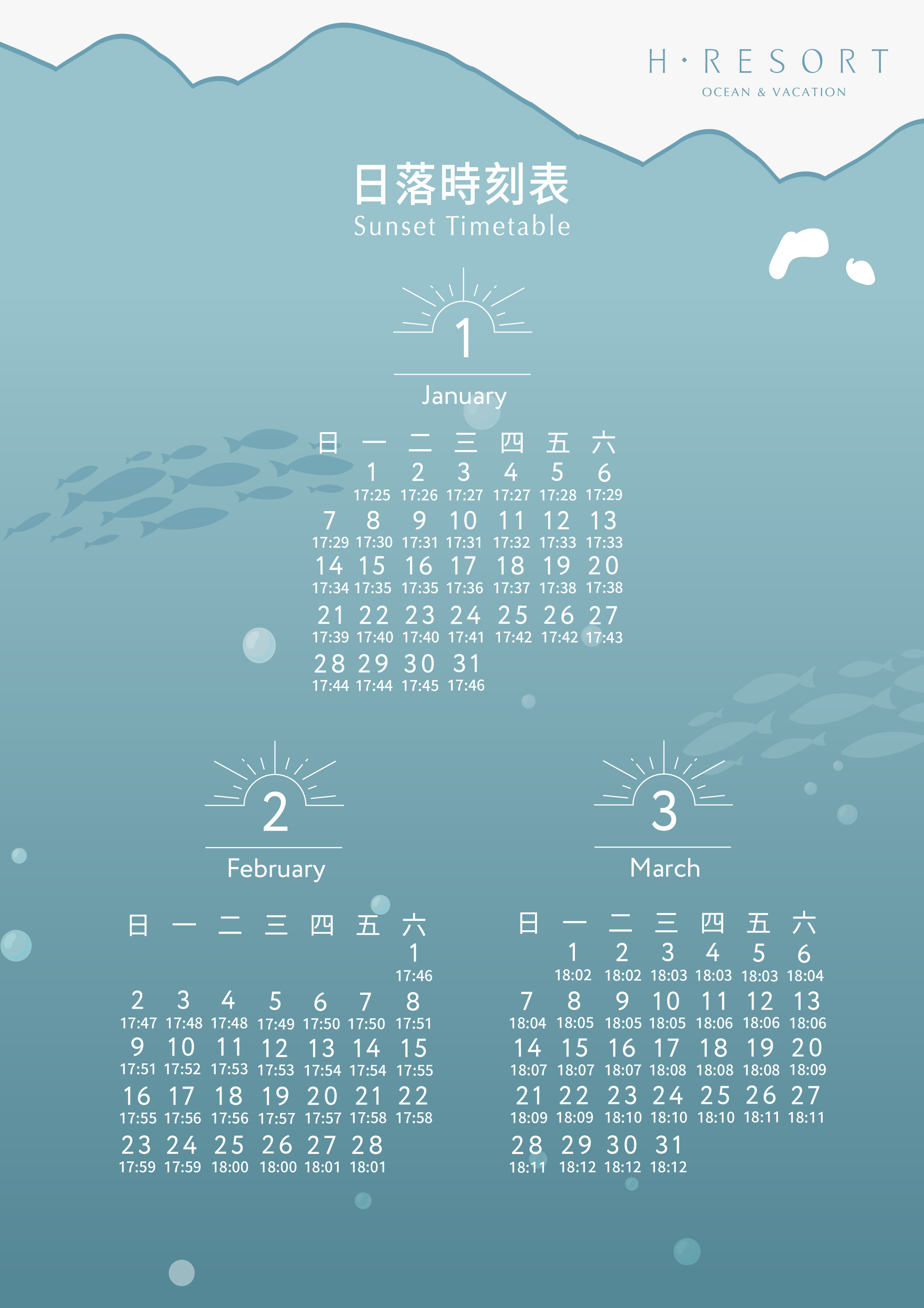 【1-3月日落時刻表】
