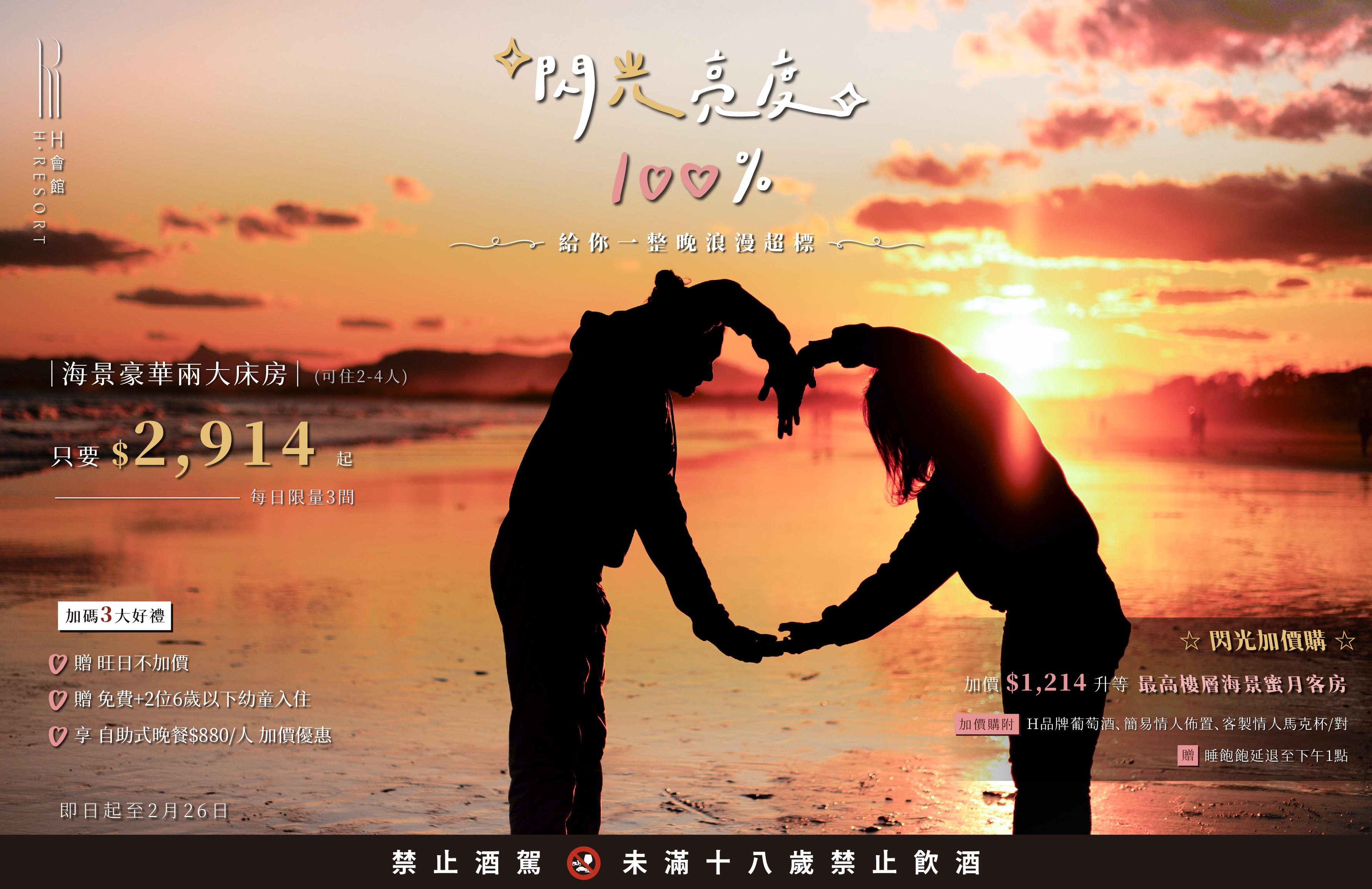 1️⃣ 升等最高樓層『海景蜜月客房 Honeymoon Room』〔最多入住大人*2、幼童*1(6歲以下)〕