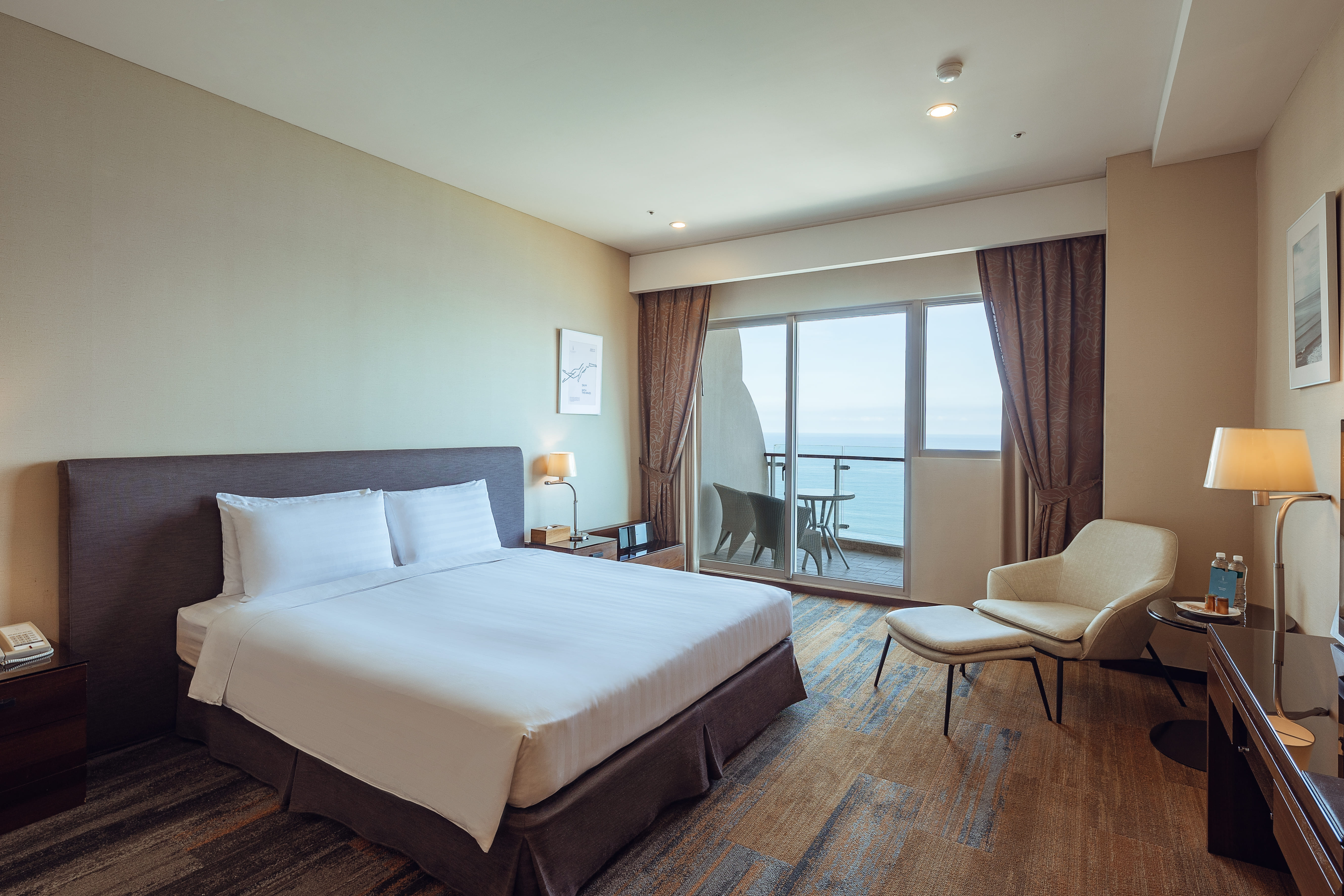以白與棕色系為基調,透過整片海景落地窗,閱覽大自然的生動畫作,12坪的空間大小,擁有柔軟舒適床組、乾溼分離的獨立衛浴、精緻貼心的Mini bar、免費寬頻網路等等各項設備,讓旅人一踏進那刻起,輕鬆寫意。